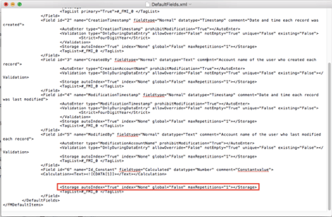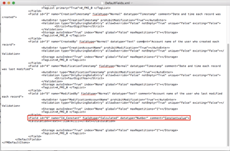 “Applications/FileMaker Pro 17 Advanced/FileMaker Pro Advanced.app/Contents/Resources/en.lproj/DefaultFields.xml” - If you are using Windows machine then you can get the xml File from the following location.