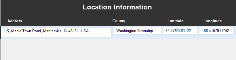 - On Clicking any of the Point in the Map we showing the Address, County, Latitude and Longitude information of the Point Marked with Text Link Button “Set Location Details”